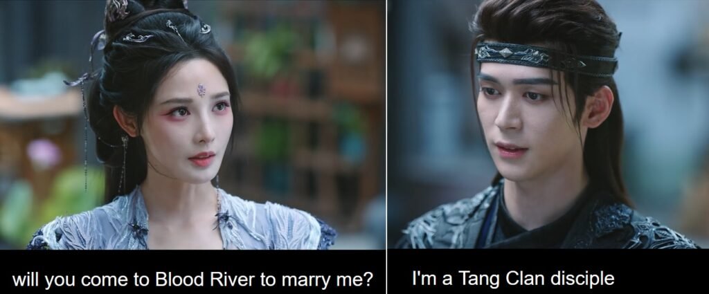 Qingyang came back to the clinic with Lianyue. Xuewei was not happy seeing Lianyue either, lol, especially since she was Yumo’s bestie. But they needed Lianyue to help them investigate the poison. Qingyang and Yumo left Lianyue alone with Yumo. She asked him directly if she was in his heart. Lianyue revealed that he often thought about her, but he was a Tang Clan member and the Guardian of Tianqi City. His grandmaster wouldn’t agree if he went to Blood River to propose. Yumo asked if liking a woman from Blood River was shameful. Lianyue denied the idea, but Yumo already said what she wanted to say, and from now on, they were just partners in action… awww!