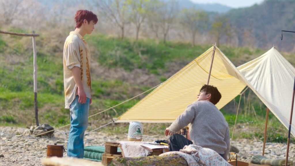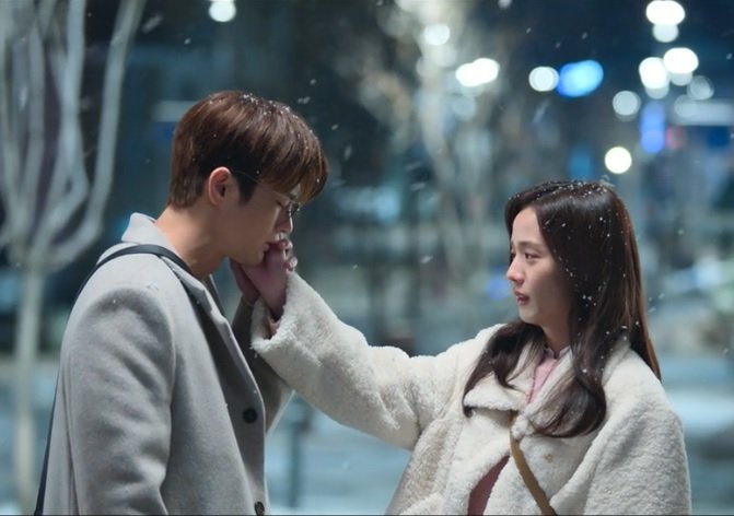 Through a series of coincidences, Gyeong Nam started to have a feeling towards Mi Rae and quietly cares for her, but at that time, he heard she had a boyfriend (Eun Ho). Once he knew she was available (she “broke up” with Eun Ho), he confessed in Episode 5 but was rejected, mainly because she was afraid of a real romance. They got together in Episode 8, but it was rocky when he found out about her AI “boyfriend”, Yeong Il.