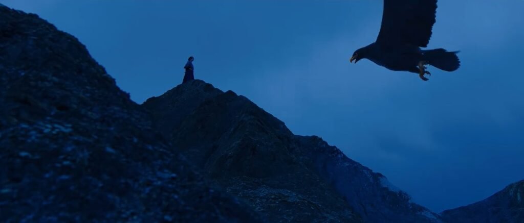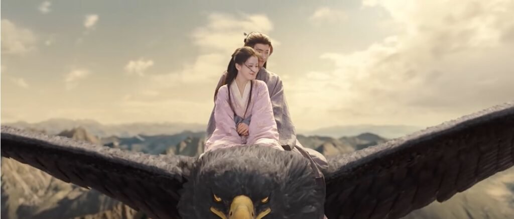 Sun Ruoshui admitted that she saw the man in black give Nie Zhe a list of people to be killed and promised to help him become the Li Sect leader. Qingyan and Cai Zhao believed that the man in black would rescue Nie Zhe, who was imprisoned, so they wanted to wait for the guy to show up. However, Cai Zhao couldn’t help feeling homesick. Qingyan entertained her by taking her for a ride on the eagle to see the beautiful valley. While talking, suddenly Qingyan coughed up blood.