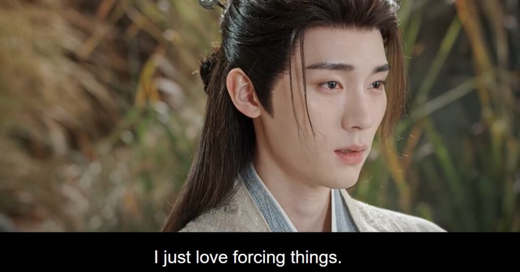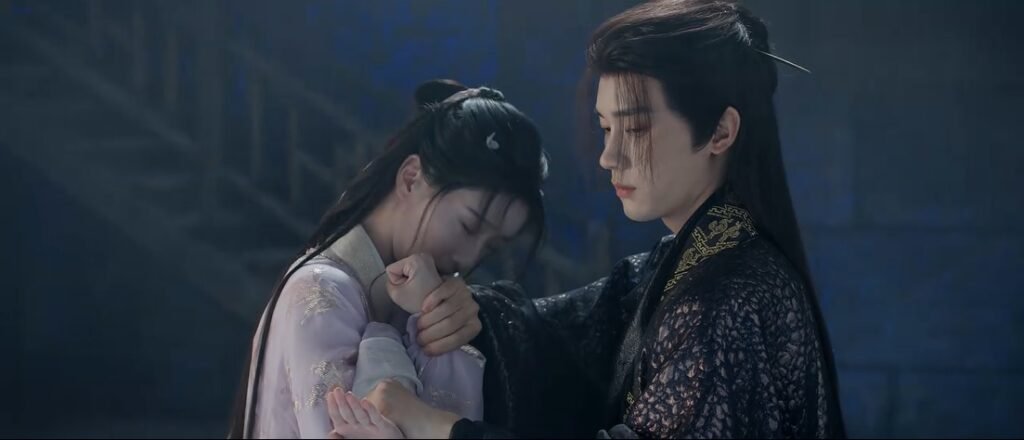 In the morning, Qingyan asked Cai Zhao if she wanted to know the real him. When she agreed, he brought her to a dilapidated shack. After he was born, Nie Zhe ruthlessly broke his limbs, and Sun Ruoshui left him alone in the hut for five years. Nie Zhe didn’t want to kill Qingyan because of his young master status. After five years, his father, who had finally recovered from his own injuries, showed up to rescue him. Sun Ruoshui had poisoned his father with the sword, too. His father spent his whole life fixing Qingyan’s limbs with his inner power, which led to his death.