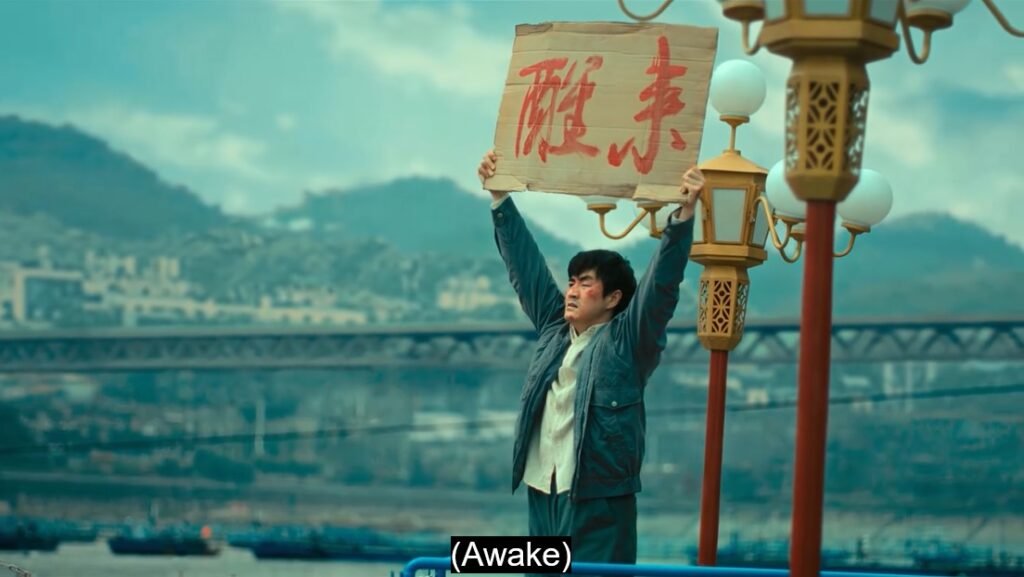 After Yang Wen Yuan found out that Qu Meng worked in a so-called Penglai International Club, a social club which was actually a brothel, he put up a sign with “Awake” or “Wake up!” as a call to action.