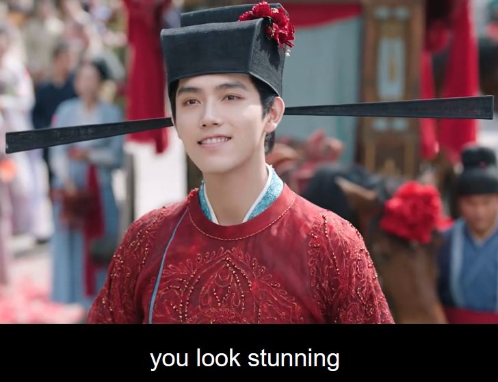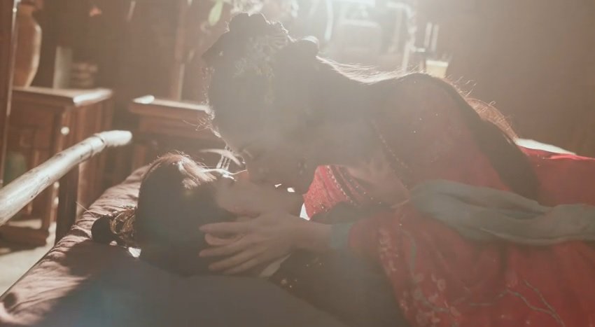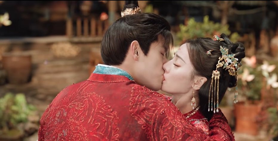 Duan Xu made a secret agreement with Feng Yi to help him exchange his sense of sight to Simu so she could see colors, because she was color blind. Since little, Simu loved wear red clothes, although she couldn’t see the color. On the wedding day, Feng Yi took Simu to a balcony, where she and Duan Xu could see each other clearly. Duan Xu then took out the blessed flower given by Feng Yi, and performed the exchange. This was the first time Simu saw the color, and Duan Xu looked very attractive in red.