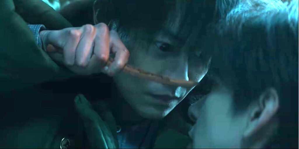 Jiuluo woke up and found herself being tied up by Yan Tuo. She feigned having an asthma attack and asked him to find her breather in her bag. She then knocked him out and tied him. Jiuluo brought the three people to Mr. Jiang. Apparently, Jiuluo wanted to be free from being a Nanshan’s Hunter, so she hunted down earth fiends to buy her freedom. She asked Mr. Jiang to save Mr. Sun, because he was an innocent victim. Thank goodness that poor guy didn’t die! However, Mr. Sun was already infected by the monster’s bite. The monster was what both Mr. Jiang and Jiuluo concluded as a human-form earth fiend. About the third person Jiuluo brought, Yan Tuo, he was a human, but he seemed to work for the Earth Fiend.