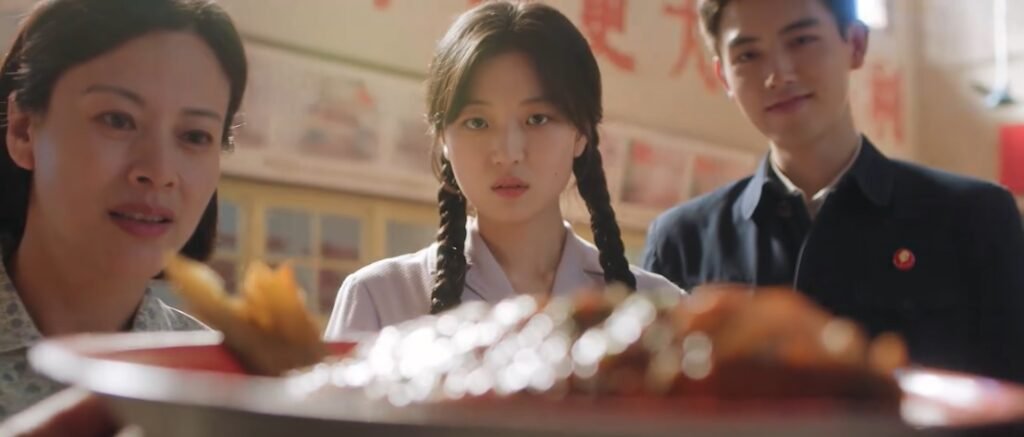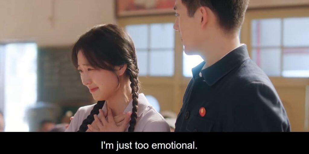 I had to screencap Fei Ni’s facial expression seeing the food workers enter the dining hall with plates of delicious braised carp. Mom was curious, Fei Ni was shocked, but Muyang beamed happily. Later, after her parents, his sister and brother-in-law, and Muyang gave their speeches, Ms. Xu urged Fei Ni to say something. She couldn’t say much and burst into tears.