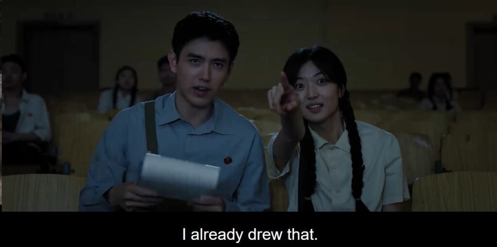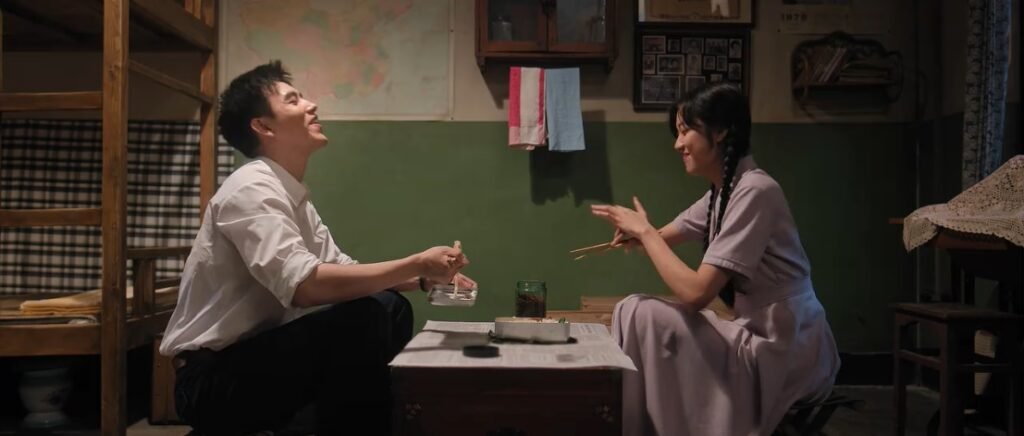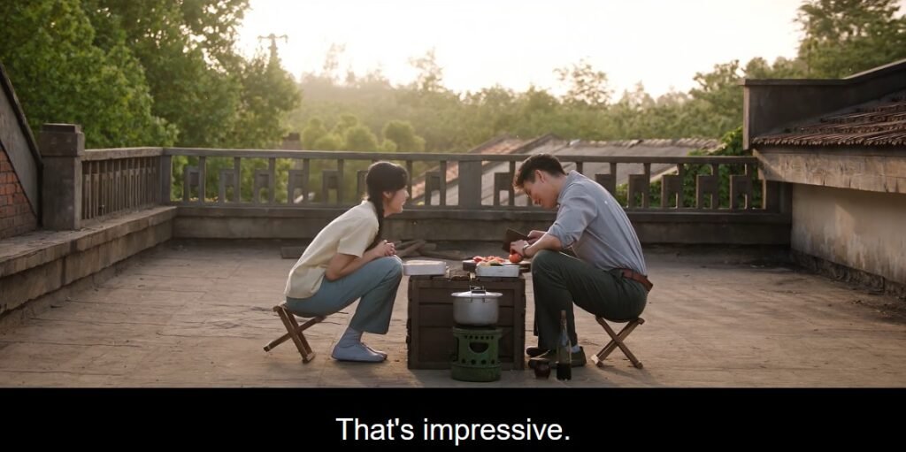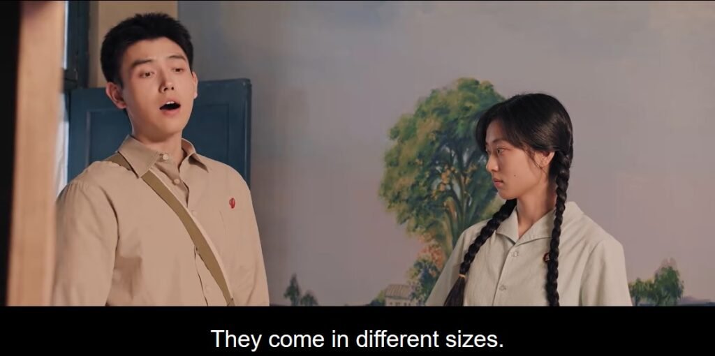 On one of their date nights, when they sat on the rooftop, they talked about their dreams. Fei Ni regretted that she couldn’t go to college, but Muyang encouraged her to find something else she loved to do. She loved making clothes for her family, even for her neighbors. Last time, when she modified Dad’s small shirt for a bigger Muyang, it looked really nice. When Muyang found out that Fei Ni loved fashion design, he took her to watch foreign movies with actresses wearing pretty clothes. Muyang was busy drawing for Fei Ni to capture the dresses, and at home, she started designing the dresses.