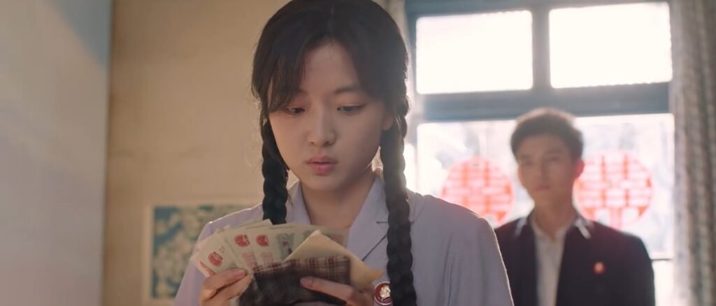 Fei Ni decided to replenish the missing money by bringing home cartons to fold for the gig. Muyang apologized sincerely for holding the wedding banquet without discussing it with her and used her money. Eventually, she forgave him, and they happily shared dinner, since they didn’t even eat the expensive braised fish! Fei Ni punished Muyang to help her fold cartons for three months, which he happily agreed.