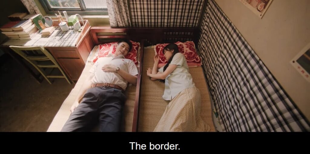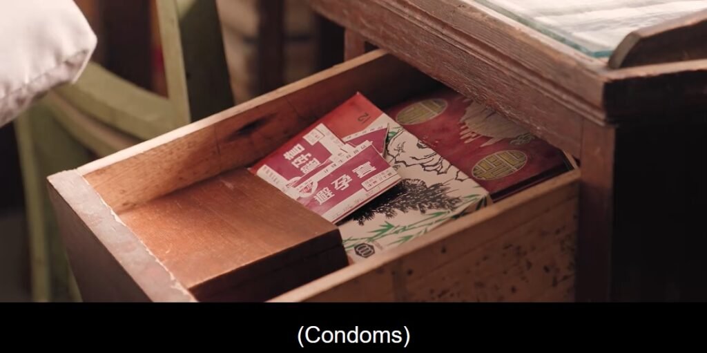 While at the wedding banquet, Feng Lin overheard others gossiping about Fei Ni and Muyang sharing a bunk bed. She was suspicious again that their marriage was indeed fake, so she insisted on visiting them to congratulate their wedding, by bringing them a fruit gift. Fei Ni suspected that Feng Lin was up to no good, so she secretly signaled Muyang, who understood her immediately. He rushed home and moved Fei Ni’s belongings from the top bed to the bottom bed, where he slept. While inside, Feng Lin was still suspicious because the top bed was clean. She secretly searched the drawer and found that the condoms distributed by the factory remained untouched.