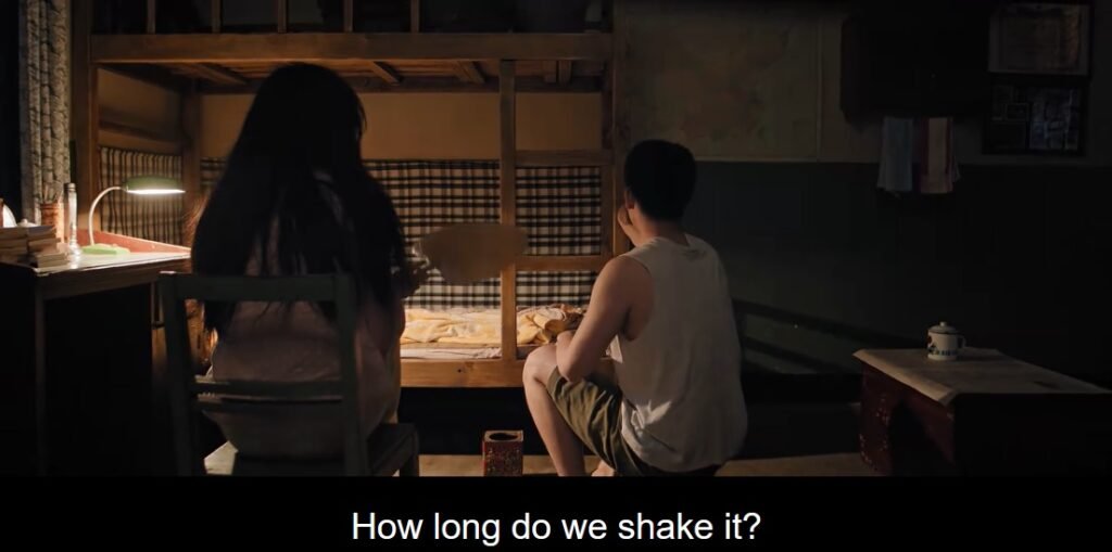 Muyang and Fei Ni thought that no sex noise might be a problem, so that night they “wouldn’t hold back” in sex. Muyang shook the bedpost and dropped some stuff, while Fei Ni fanned him, wondering if what they did was correct, lmao!