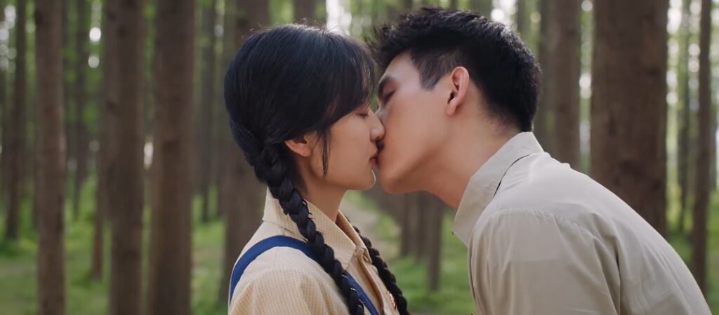 Muyang and Fei Ni were so happy after visiting his sister, Mujing. He said that they became more and more like a married couple, and she hugged him tightly. But their happiness didn’t last long. Once they returned home, they were confronted by Fei Ni’s angry parents, brother, and sis-in-law. They had found the marriage agreement! When they berated Fei Ni, who made the agreement, Muyang made a heartfelt public confession that he had liked her since they were in high school. When he had amnesia, he subconsciously drew her from the back. The parents were still skeptical and wanted to observe the couple for a year. After the family left, Fei Ni asked him if his confession was genuine. Shyly, she also confessed and they kissed, although awkwardly.