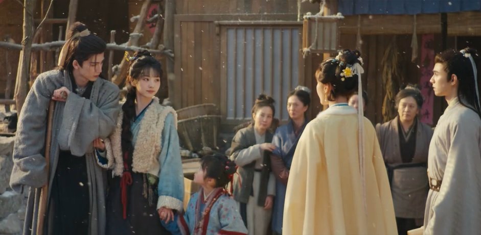 The girls’ uncle wanted to take the land title deed, so he came with the Jins, a family of thugs. Changyu managed to kick them out with her fighting skills learned from her escort father, and Yan Zheng secretly helped her from his hiding place.