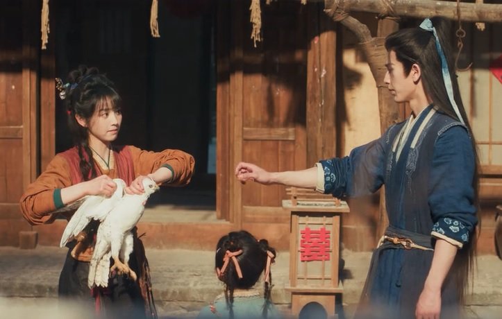 The scene with the gyrfalcon was so funny. The bird was Yan Zheng’s messenger bird. Changyu noticed that the bird hung out by the tree next to the house often. She trapped it and wanted to sell it at the market. Yan Zheng tried to rescue his bird by saying that it was not worth of money, so she wanted to cook it instead. Finally, Yan Zheng lied that he knew a bit skill to tame the bird as a messenger bird, and it would worth a lot of money. Changyu gave the bird to Yan Zheng, who hurriedly bandaged the bird, only to be caught using the hair ribbon she bought for him!