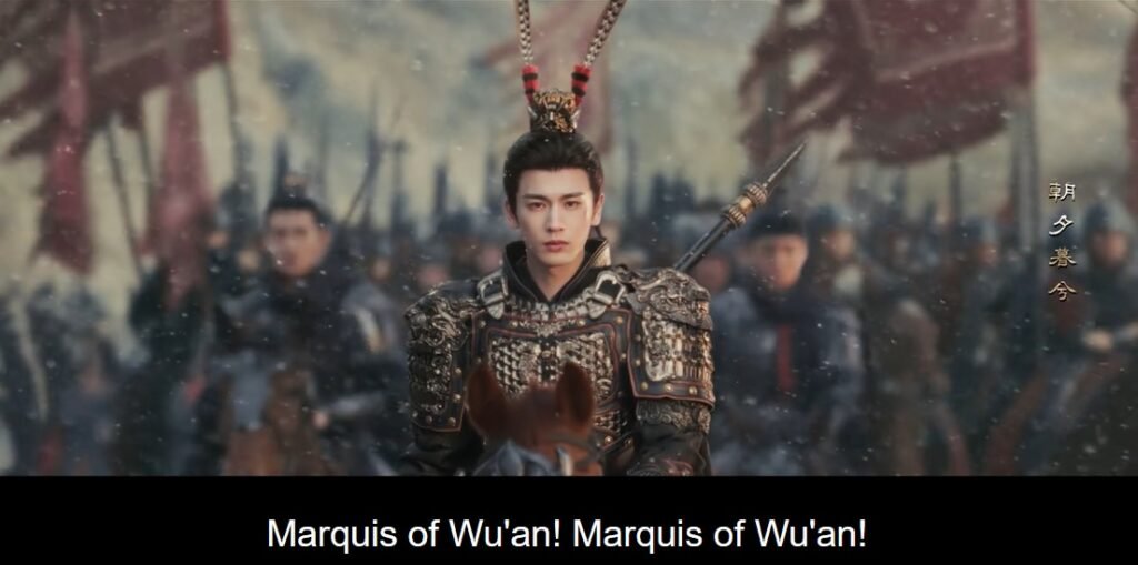 Because of the looming war, the military draft started in Lin’an. Every man was drafted, even the Jins and the old Mr. Zhao. Changyu heard that her husband was caught for a draft, too. She wanted to give him supplies, but was stopped by the soldiers. The young male characters in the drama were pulled by their relatives to support their sides. Marquis Wu’an returned with all his glory, and Chancellor Wei, his maternal uncle, welcomed him happily. His treatment of his nephew was better than that of his own son, Wei Xuan. Or… was that his real son?