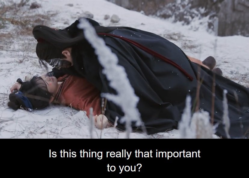 They found her hanging on the cliff side, wrapped around vines. Xie Zheng released her and ordered his guards to find a shelter and hang the bandits on the city wall with their guts open for three days. They found a home, but there was only a blind woman inside. She knew a little about medicine and could tell Changyu was on the verge of death because of hypothermia. The woman told Xie Zheng that Changyu needed scraping therapy for blood circulation. Xie Zheng told the woman he was Changyu’s husband and that he would scrape her.