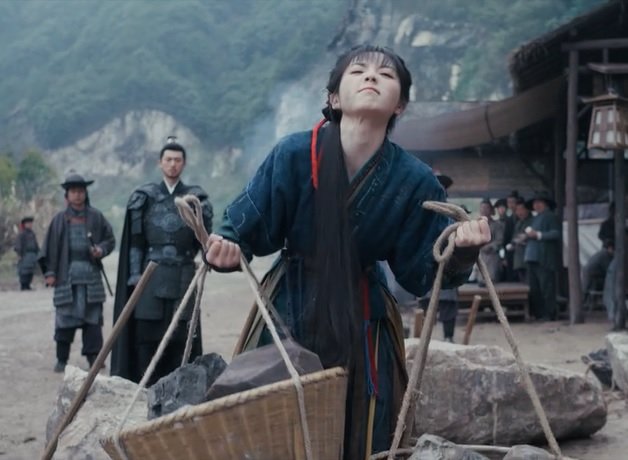 Changyu noticed a quarry worker who was rewarded with a drumstick because he carried baskets of stones to the mountain without using a cart. She struck a deal with the supervising general: if she could carry two massive baskets of stone up the mountain alone, her companions would be rewarded with drumsticks. Wait, that general was Pei Yi, General He’s subordinate, who was given a “heinous task that might bring condemnation from the whole world”. Pei Yi didn’t believe it, so he challenged her that if she could do it, he would reward the group with one chicken each. Changyu used her father’s techniques to carry the baskets of stone up to the mountain.