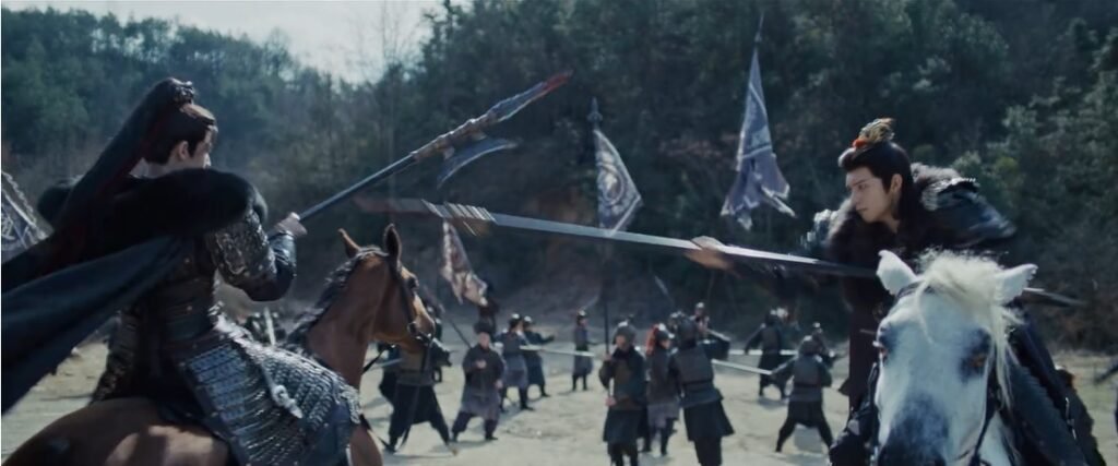 On the battlefield, Xie Zheng, who had only brought a thousand soldiers, was face-to-face with Sui Yuanqing. He not only brought way more soldiers than Xie Zheng did, but also his prized hostage: Changning. Xie Zheng’s plan was blown when Changning saw Xie Zheng and called him “brother-in-law”. Sui Yuanqing was enraged at the deception and wanted to kill Changning. Xie Zheng shielded her and managed to save Changning and capture Sui Yuanqing. He and the soldier rode hard towards the gorge to trap Sui Yuanqing’s soldiers. At the right time, the dam exploded!