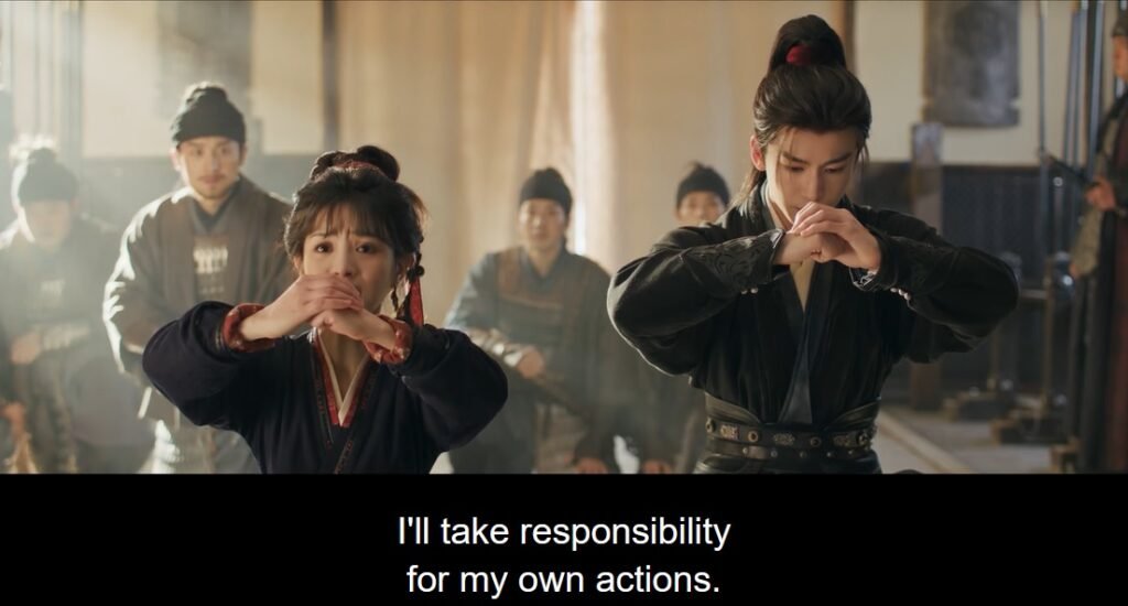 In the previous episode, Changyu was arrested because she was suspected of being a rebel. Changyu was put in a labor camp and paired with an elderly scholar called Tao Yi, or Old Man Tao. We know later, this scholar was Xie Zheng’s teacher. The more the merrier, they got more companions: the Jins, who were Changyu’s employees at the meat shop last time: Jin Yuanbao, Man Di, Man Cang, and Man Wu. She shared the tragedy in Lin’an, which affected their family, too. She told them that Sui Yuanqing was the mastermind behind the massacre, and they vowed to avenge together.