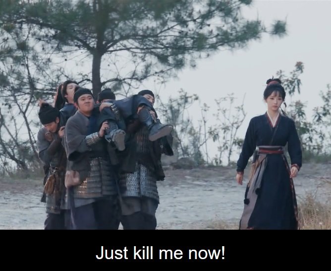 When she left, the Jins traded lots with four other people who didn’t want to leave the camp; they wanted to live or die together with Changyu… awww! At night, Man Cang and Man Wu overheard soldiers talking that the dam would be blasted and the ones stayed would actually die. They reported this to Changyu. She realized Tao Yi knew about the plan and sacrificed himself. They decide to rescue Tao Yi.
