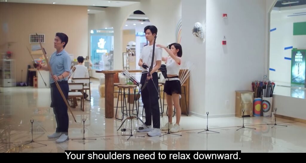 Li Wu actually already knew archery, but he pretended not know anything, and asked Cen Jin to teach him, much to Dr. Lu’s jealousy. However, the ‘competition’ didn’t last long, because she was called for work. That left Li Wu and Dr. Lu alone, and they lost interest in showing off their skills because the subject of interest had gone. Dr. Lu wanted to show off his knowledge of Cen Jin, so he invited Li Wu to eat at a restaurant he claimed was Cen Jin’s favorite. Eventually, they argued back and forth about what Cen Jin’s favorite dishes were, each claiming differently.