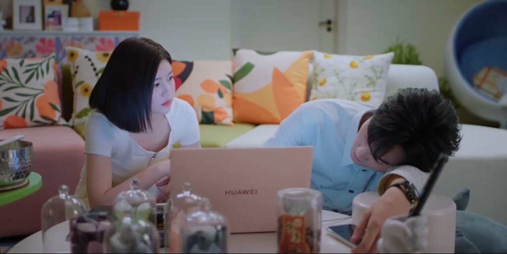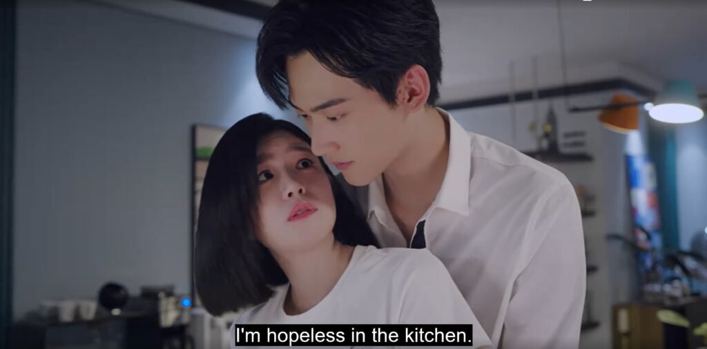 Li Wu had another sweet time with Cen Jin. After working overtime, he forgot to eat dinner, so he asked Cen Jin to make some noodles. In return, he helped her translate her work draft from Chinese into English. While she was cooking, he fell asleep in the living room as she put on an aromatherapy candle. He seemed to be resting, not falling asleep, as he took her fingers when she was scrolling the laptop screen with the touchpad.