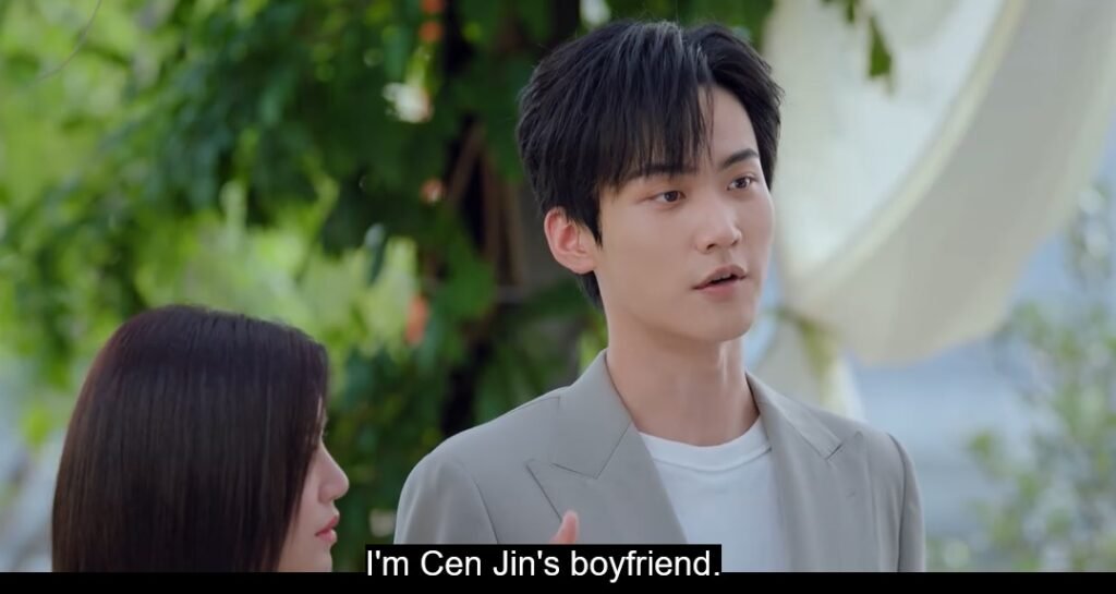 The other most important people needed to know about their relationship were… guess who? Cen Jin’s ex-husband, Wu Fu, was with her then-mistress, who was now his wife. Cen Jin’s former client at the other workplace invited her to the wedding, and of course, Wu Fu was invited, too. Li Wu offered to accompany her, but he would be late as he was busy with his new project. Luckily, he came to accompany Cen Jin, just at the right time when the bitch wife of her ex scumbag pretended to trip and spilled wine onto Cen Jin’s dress. Li Wu pulled Cen Jin by his side, and wine splashed on the floor. He proudly introduced himself as Cen Jin’s boyfriend, much to the others’ envy. Luckily, the bride and groom came, and the pissed Wu Fu and his wife left.