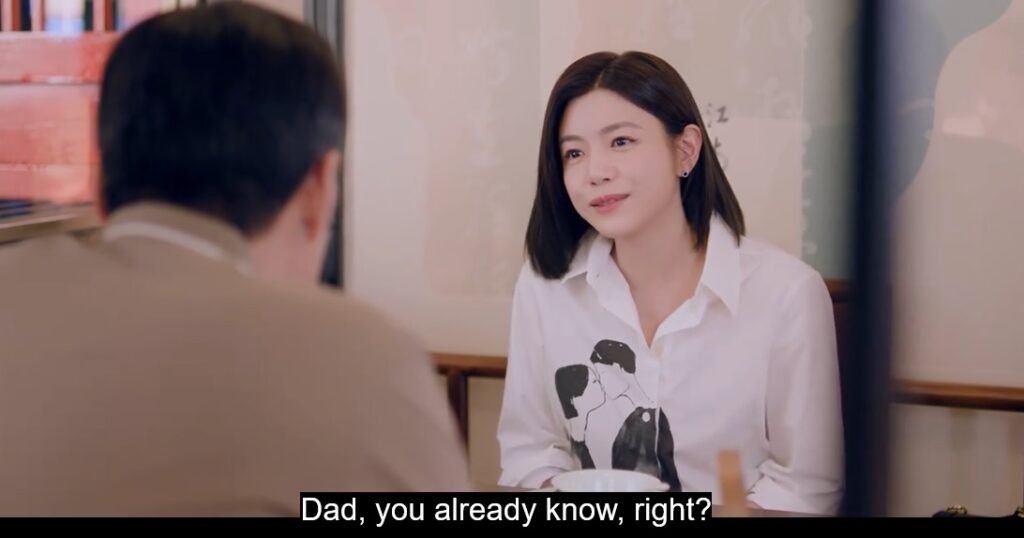 Dad went to talk to Cen Jin, who explained to him honestly. Dad was cool. After his daughter’s explanation, he promised to support her and Li Wu. I love Cen Jin’s shirt, it seemed a custom one, made for her and Li Wu. When Dad went home, he realized Mom was gone! Where did she go? Moved into Cen Jin’s apartment, of course! Hahaha!