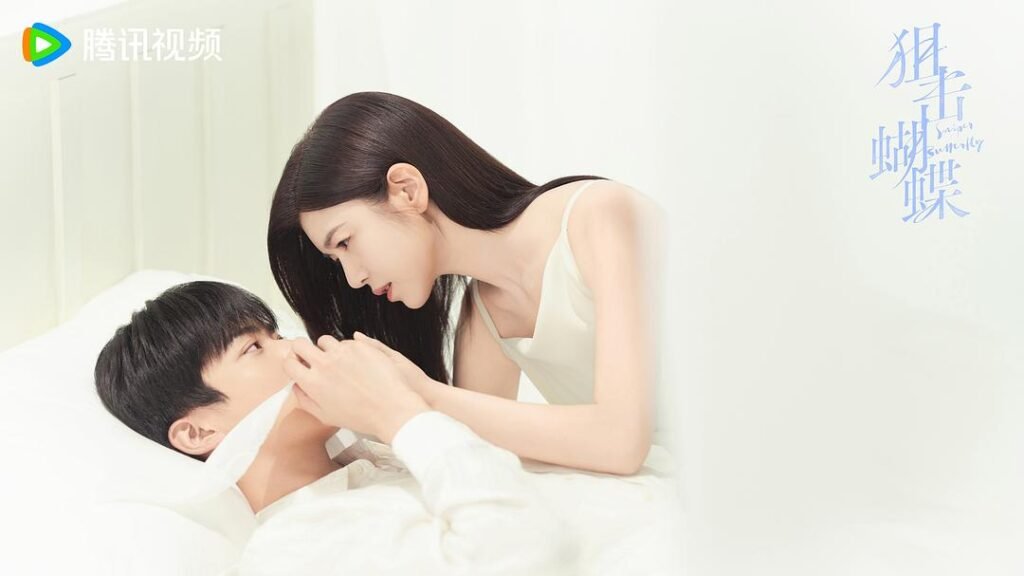 The title Sniper Butterfly. Surprisingly, the native title of the novel source is the same as the drama title. However, the right translation is “to snipe (shoot from hiding) a butterfly,” and the meaning is metaphorical. The “Sniper” represents the Male Lead’s unwavering, focused, and persistent love for the Female Lead. Like a sniper hitting a mark, his devotion is precise and long-lasting, spanning years after she first helped him when he was a student. The “Butterfly” doesn’t represent the Female Lead, although she wears a lot of butterfly accessories, shirt, decor, etc.) but the “Butterfly Effect”, how small, initial actions from the Female Lead triggered massive, life-altering changes for the couple, eventually leading to their romantic reunion years later. “Butterfly Effect” (蝴蝶效应) is also one of the OSTs (see OST section).