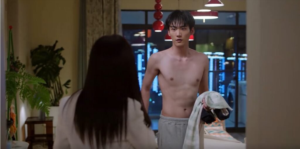 During Chinese New Year, Li Wu went back to stay with Cen Jin again. There was a bathroom mishap. After showering, Li Wu realized that he grabbed the wrong clothes. He tried to sneak out, but was discovered by Cen Jin, who was on the phone with Chun Chang. He was so embarrassed that he dropped his towel. Chun Chang teased Cen Jin about what Li Wu’s physique looked like. Later, when Cen Jin returned the towel, she incidentally dropped it. When both tried to pick up the towel at the same time, heir eyes met, creating a moment of awkwardness.