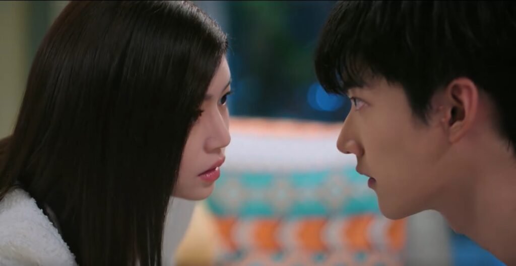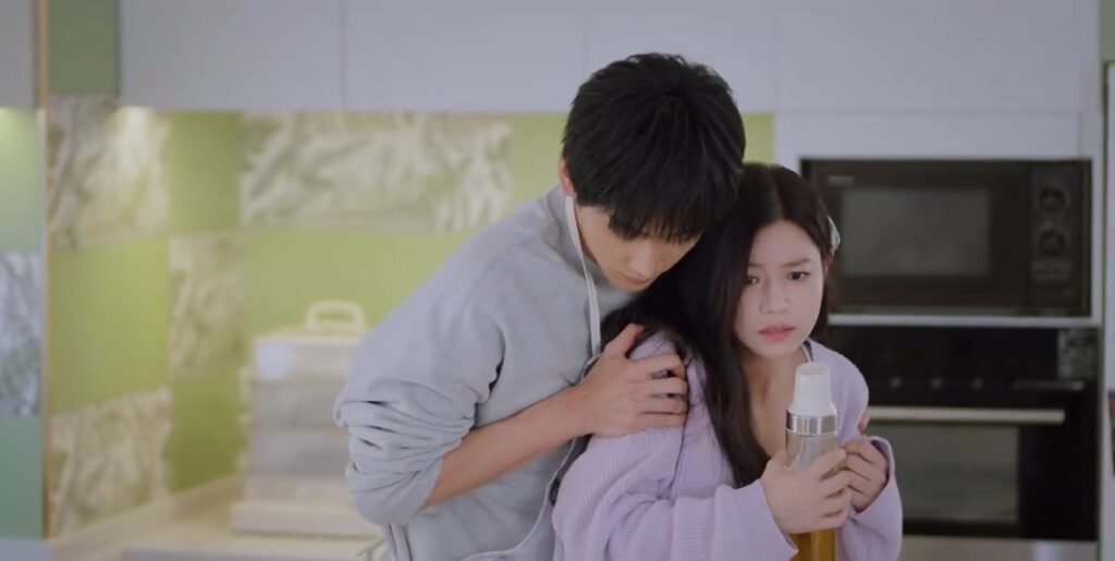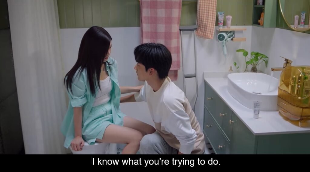 The incident turned out to be a blessing in disguise for the couple. Li Wu dedicated himself to caring for Cen Jin. Although Cen Jin was very uncomfortable with Li Wu’s care, she couldn’t do anything or reject him. He even carried her back and forth if she needed to go to the bathroom. While sitting in her room reading the book, he couldn’t help staring at her and commented that she was very beautiful, a statement that she couldn’t reply to. Mr. Cen came incidentally and found out that she had an incident. He wanted to take her back home, but she refused because Mom was abroad and Dad had a bad back. Li Wu quickly said he could take care of her because he used to take care of his grandfather. After Dad went home, Cen Jin went to the bathroom but knocked down a makeup bottle. Li Wu retrieved it for her, and they were so close that he had the urge to kiss her. Of course, Dad came back to retrieve his keys.