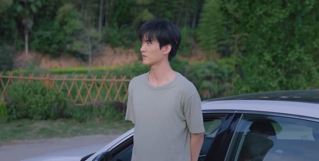 Before they left the village, Auntie secretly gave Li Wu money and a bag of stuff. Inside, there was also a photo of Li Wu and his late father. Li Wu asked Cen Jin’s permission to visit his father’s grave. While waiting for him, she fell asleep. After he was back, he didn’t want to go into her car because his shoes were muddy. While waiting for her to wake up, he shielded her from the sun, awww!