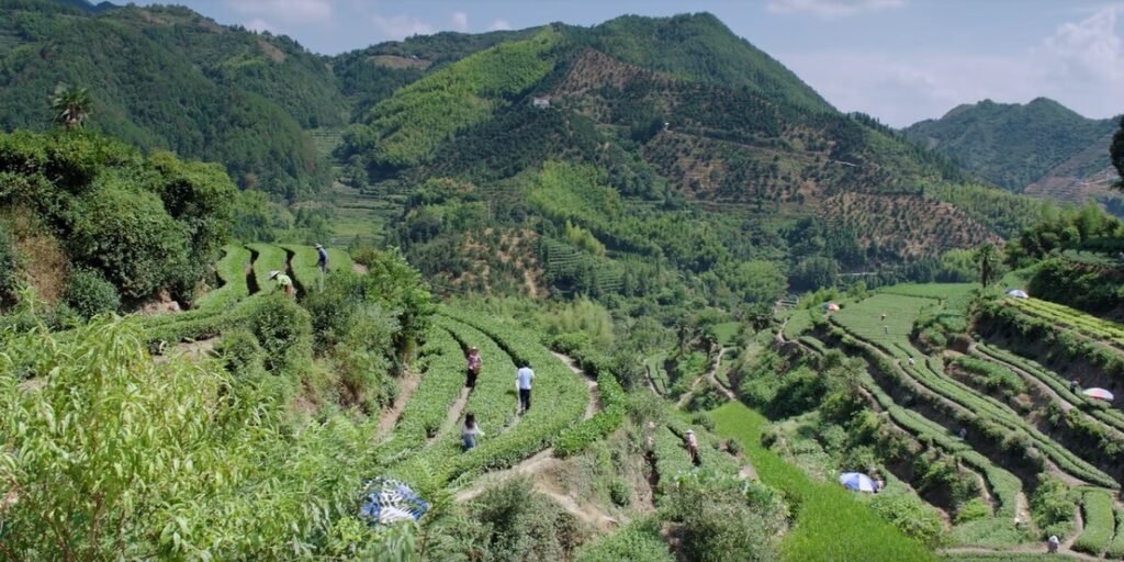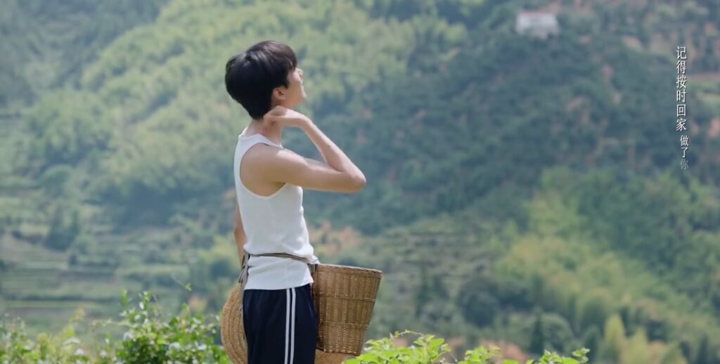 Another school holiday was approaching. Li Wu’s aunt called him, since she needed help with harvesting tea leaves. She injured her back, and his uncle went to work at the mine. Li Wu planned to take the bus, but Cen Jin drove him back. They ended up helping the sick aunt. I didn’t know which scene was better, the beautiful panorama of the tea plantation, or Li Wu sweating and wearing only a tank top, taking a break from harvesting. Cen Jin captured both beauty on her phone.