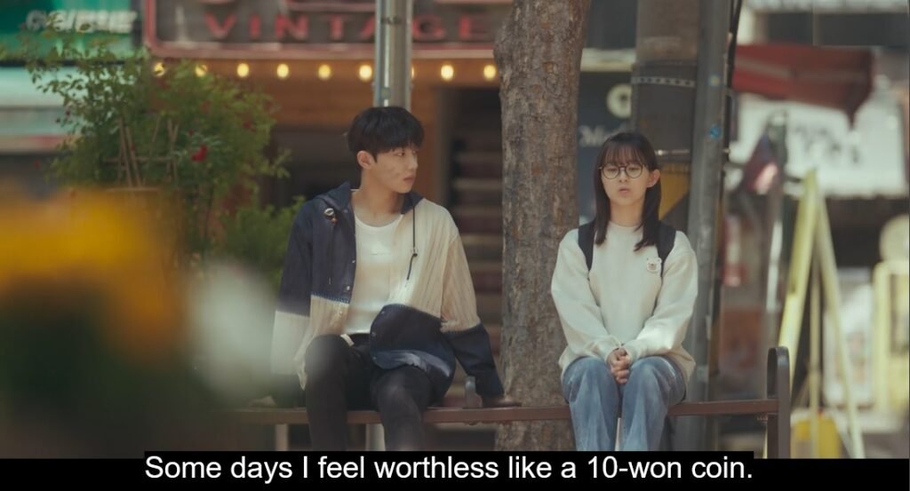 From the ordinariness comes the need for self-love. Because this drama is also about the drawing club Spirit Fingers, thus, the central theme of this drama is discovering and embracing your own “color” and finding value in yourself, which is a message that resonates with all ages. The Spirit Fingers club gives a color-coded nickname to each member that reflects their distinct personality. Since U Yeon starts as a shy and self-conscious girl who wears only black or gray clothing to avoid attention, she is essentially living a “colorless” existence. She found that her color is baby blue. The color primarily symbolizes innocence, purity, and tranquility, which fit with her journey of self-discovery.