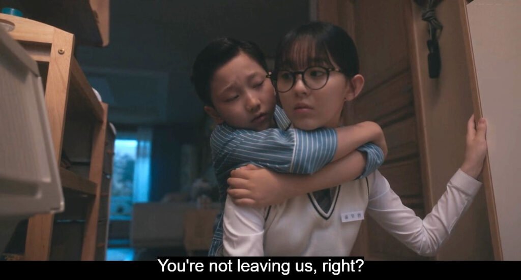 - The sibling relationship of U Yeon and her younger brother, U Dol. U Dol is a scene stealer, especially after he gives a heartfelt backhug to his sister when he thought she would leave him. His hate and jealousy towards Gi Jeong is hilarious, with their playground duel scene. We can see, despite the confidence of his intelligence, that deep down, he craves a relationship that he fears his sister’s attention to him will shift to her boyfriend. His newfound friendship with Moon Bong Gu is cute, too.