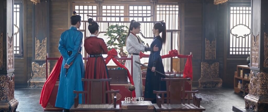 In the bright side, it seemed Xiao Jinli and Luo Yan’s romance had blossomed. Jinli had to return to the military camp and said farewell to Luo Yan. She asked for his token, and he gave her his belt. Luo Yan hugged Jinli. When Xiao Jinyu and Chu Chu learned that Xiao Jinli’s belt was gone when he returned, they tried to hide their smiles!