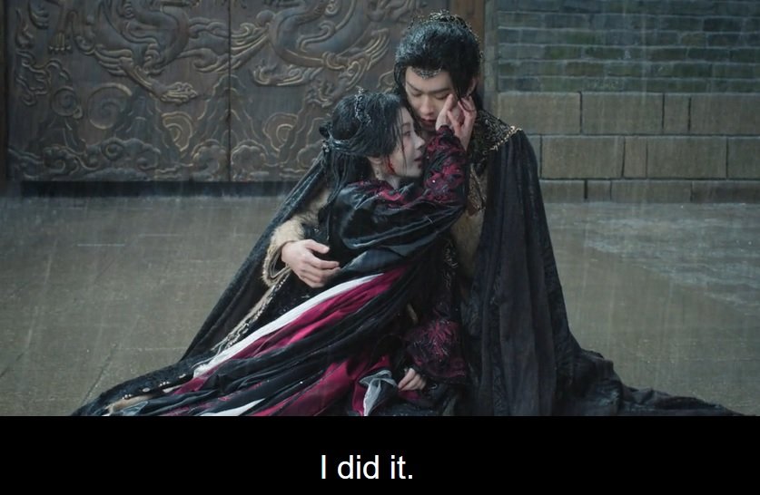 Wuyi was injured because of all those time loops; she couldn’t withstand Yuan Wuhuo. She used herself as bait to take the hit from Yuan Wuhuo while chanting the incantation to activate the Dragon’s Deity Power. It caused heavy rain and ended the drought. Mu Long woke up. Ji Ling and others were free from the spell. Ji Ling ran towards Wuyi and hugged her until she dissipated. Ji Ling passed out.